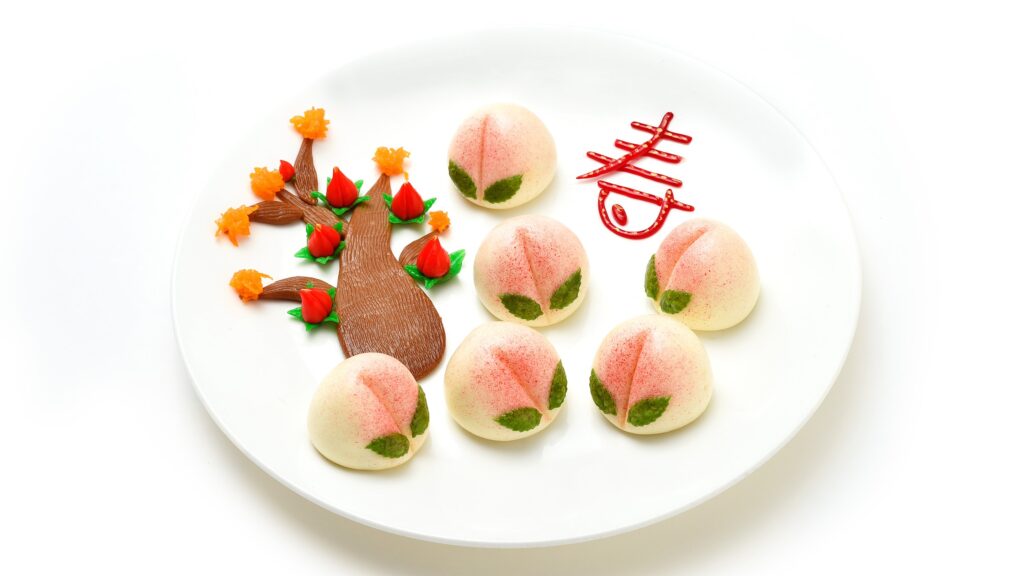 中国では、お誕生日やお祝いのお席に欠かせない伝統の「桃まんじゅう」。